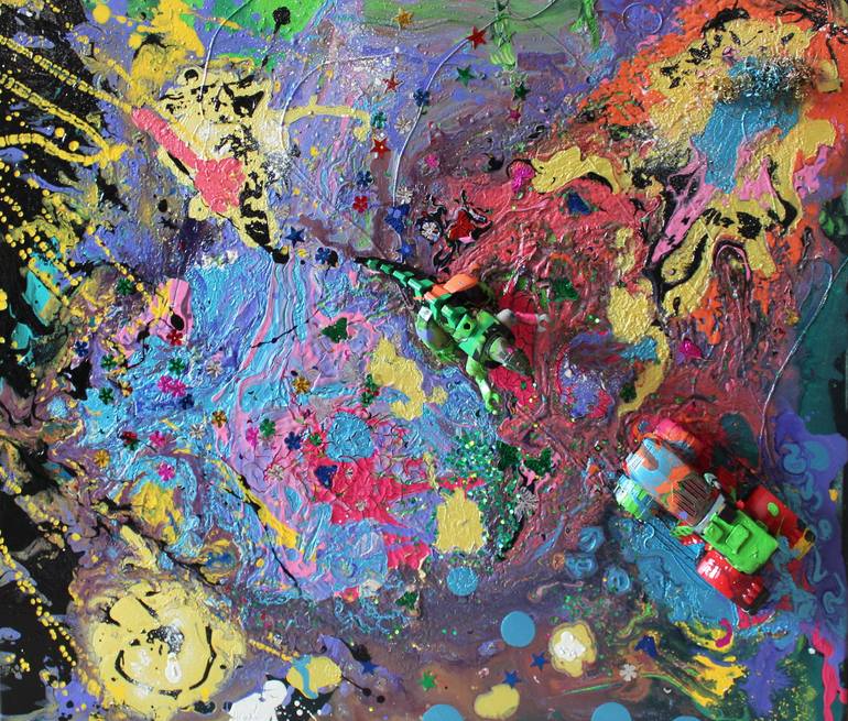 Dino's love to play with trucks, here are two friends having a party in a dino habitat. Fun, colour and glitter. Why wouldn't dino's and trucks play together? All the toys should be friends. Inspired by making friends, inclusivity, celebration and fun. By Finlay and Quin Wood. Doha's youngest collab...