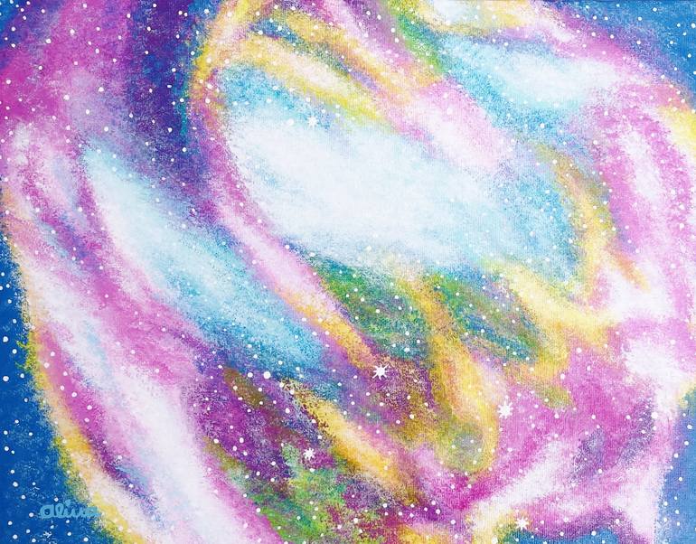 Powerful star explosion in a distant and ephemeral supernova captured by the James Webb infrared telescope. The work was painted with acrylic on stretched canvas board, it is signed in the lower left corner, and it is sealed with acrylic varnish to protect from fading and moisture.