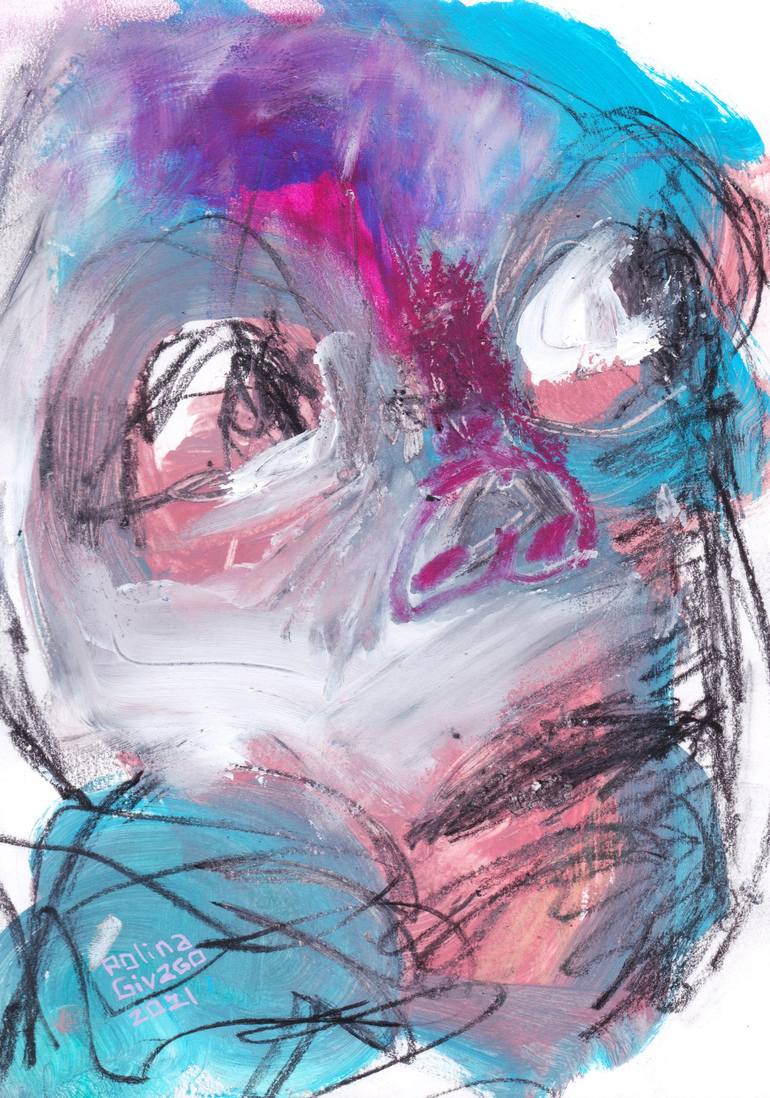 What did you say? Excuse me? This very expressive questioning portrait is a part of my series of very small sized mixed media paintings, based on some short poses of a model. acrylic and pastel on special paper. 2021 Colors used here: rose, flamingo, peach, lavender, purple, orchid, mauve, lilac, ...
