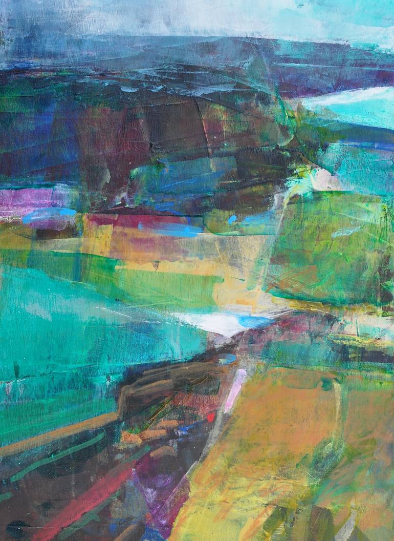 This painting is based on my recollections of the Sutherland region of Scotland, specifically along the coast. In grappling to remember it seems that the process goes on to trigger more abstract work. The observational sketches I make out in the landscape are the basis of all my work; paintings suc...