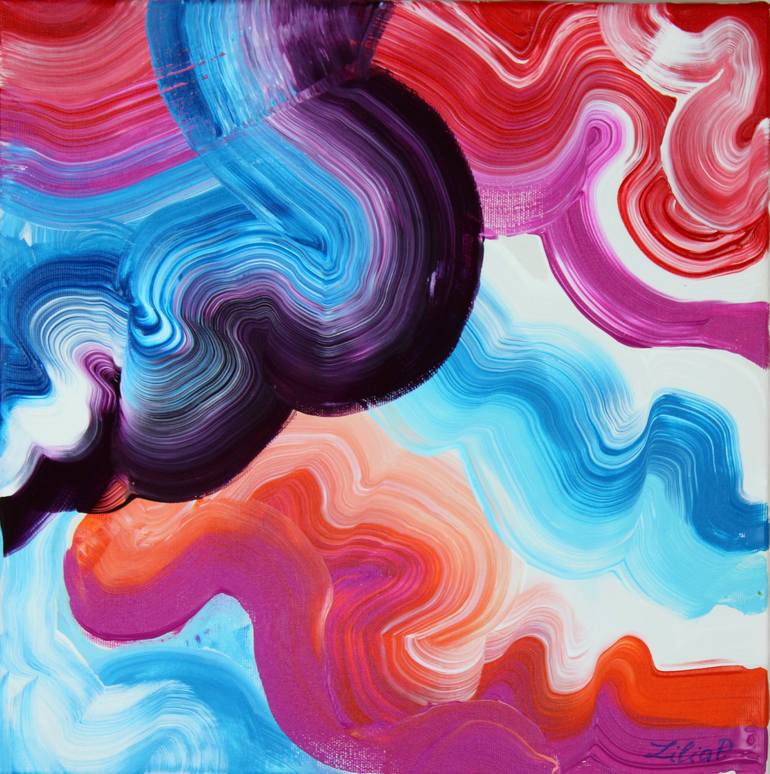 Loose lines and pleasant colors make you relaxe and have sweet dreams.When we think positively, everything around us is more beautiful and pleasant. Let's make our world more beautiful. The painting is varnished with a satin varnish to protect from dirt and light. Signed and dated on the back.