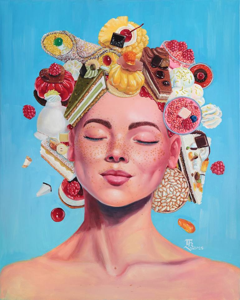 Women's beauty inspires me again and again. I come from Poltava, it is a cozy city in the central part of Ukraine, with a rich history.In 2009 I graduated from Poltava National Technical University. Y. Kondratyuk (PNTU), Faculty "Architectural", Specialty "Fine and decorative arts"There I was taught to create sculpture, graphics and painting.After graduating from university, in search of work, I moved to Kiev, the capital of Ukraine, where I still live. Painting is my passion, when I start to paint a picture it is like meditation and music helps me in this. I have two sisters and two cousins, and probably this is what taught me to appreciate female beauty. Everyone in our family is beautiful and each individuality. Among my two sisters, I am the younger one and I really liked to watch how my sisters change and mature, how they bloom like flowers and become more and more beautiful every day. But a woman is not only her beauty, it is also emotions of happiness and sadness, sexuality and sensuality, strength and passion, anger and even revenge. I like to watch how women move, how they laugh and talk, female plasticity is incredible. The main series of my paintings at the moment is "Dessert Girls", where in portraits I convey female beauty emphasized by desserts made of ice cream, fruits, berries and chocolate. But in my paintings you will also find seductive women with snakes and warrior women with swords. I love to praise women's beauty and I want to dedicate my artwork to it. I like to work in the technique of old masters without using paint solvents, all my paintings are painted exclusively with oil. For paintings, I use oil paints and canvases stretched on stretchers. I like to use pastel colors, especially blues and pinks, they remind me of the sky at sunset and go well with desserts. I also like the combination of deep blue, red and black colors, for me these are the colors of passion. My favorite artists are Boris Vallejo and William-Adolphe Bouguereau and they left an imprint on my perception of female beauty. Usually, when I paint one picture, I'm already planning several more. I want to reveal to the world many small images of beautiful, passionate, gentle, strong, militant and even dangerous women. The purpose of my work is to give joy. I want people to smile while looking at my paintings, I want to make people happy and give positive emotions, because only kindness can save the world.