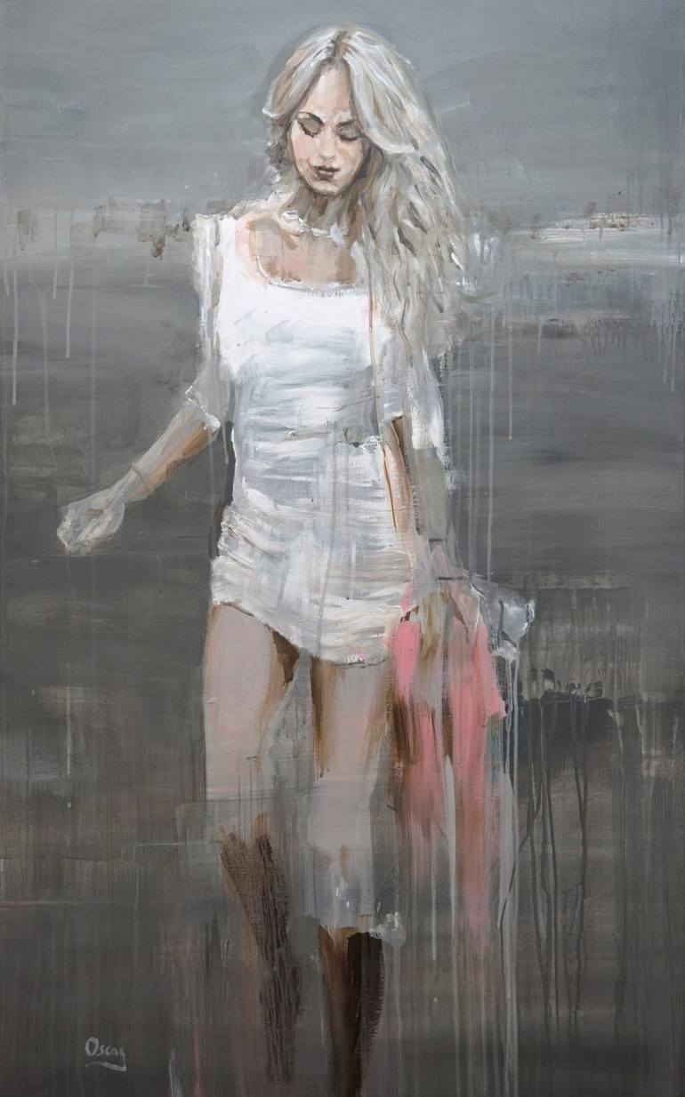 Scene of woman painted in acrylic and gesso on canvas. The canvas painting would be sent carefully rolled together with its certificate of authenticity and well protected in a tube that would be protected with bubble wrap inside another tube. In all my paintings, I use materials and means of the ...