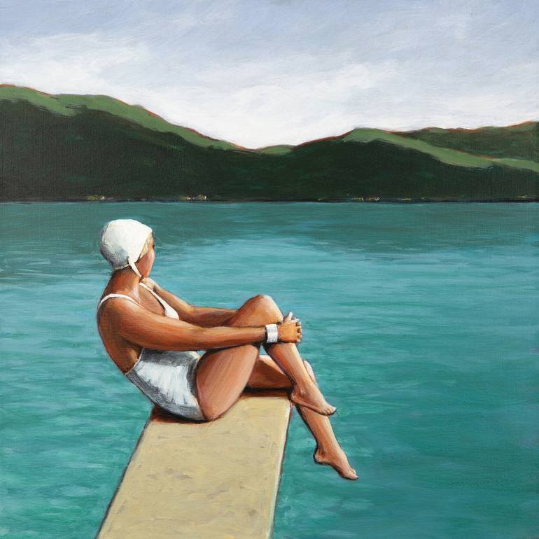 Swimmers and high divers are my favorite thing to paint. I love seeing the athletic female body in motion. When painting, I transport myself to a place offering freedom and strength and beauty.