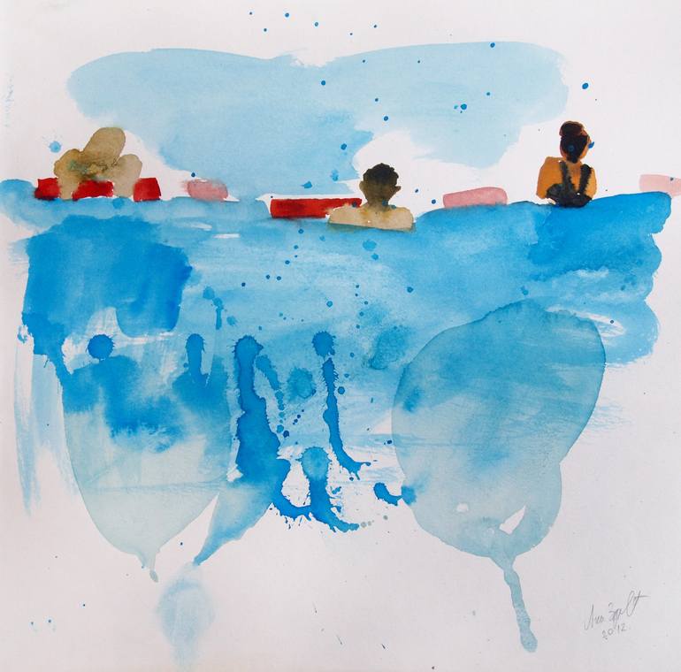 Artwork inspired by the blue color of the Adriatic sea. Watercolor on paper painted with sea water.