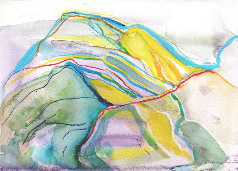 "Mountains" is a captivating mixed media piece that combines watercolor and wax crayon to create a semi-abstract portrayal of the Swiss Alps. Measuring 29.7 x 21 cm (11.7 x 8.3 inches), this artwork offers a unique blend of serene green-grey tones, reflecting the tranquil beauty of nature. Inspired ...