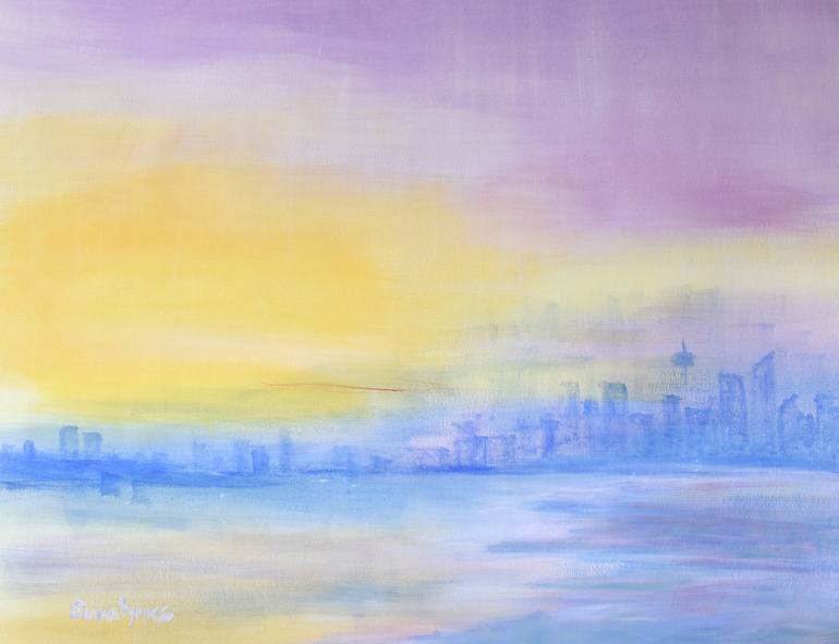 The painting was inspired by the views from Georges Heights, the dream-like quality of the Sydney city line, we Sydney-siders wake up to our dreams coming true in this beautiful place, morning vibes full of hope and dreaminess.