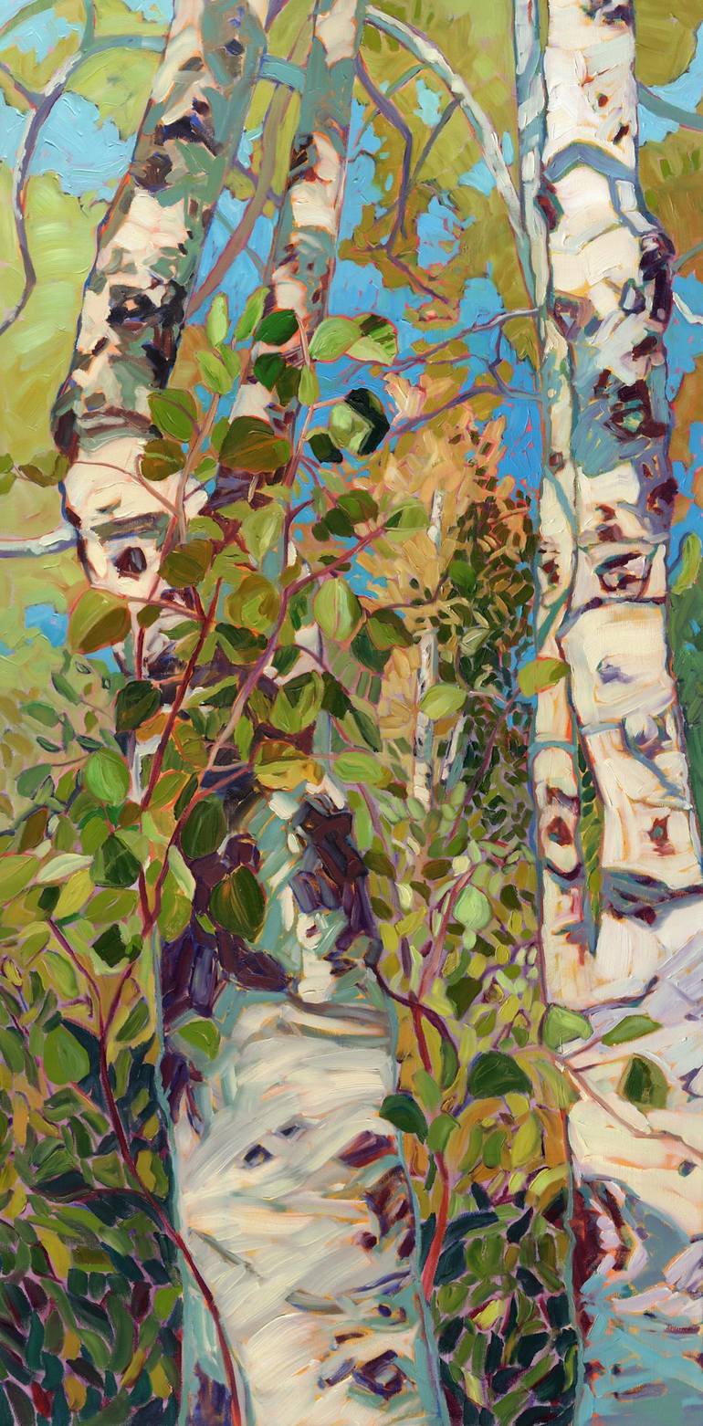 This piece was inspired by a pleasant stop exploring an Aspen Grove near Steen's Mountain in eastern Oregon. The leaves and trees made the most relaxing fluttering sound in the light summer breeze. Creating this painting served as a mediation on the calm between order and chaos.