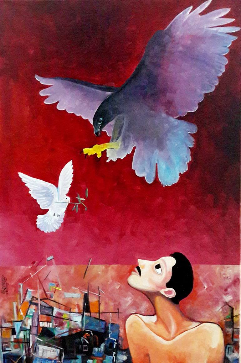 Syrian architect and painter, passionate of art, he started drawing at an early age. At the age sixteen (while he still at high school) he won the trophy of art exhibition of the University of Damascus. Studied architecture at DGSA (Mimar Sinan University now) Istanbul, and obtained Master’s degree from there 1977. Dedicated his life to both architecture and art. He sold more than 1200 paintings directly through acquaintances and art galleries in several countries and participated in many collective art exhibitions in more than one country. Began with classic then cubism followed by surrealist and engrossed by his favorite style (Abstract). Paints using the three techniques water colors, acrylic and oil. He works as senior architect and projects manager in Saudi Arabia, and participated in many art exhibitions in Riyadh