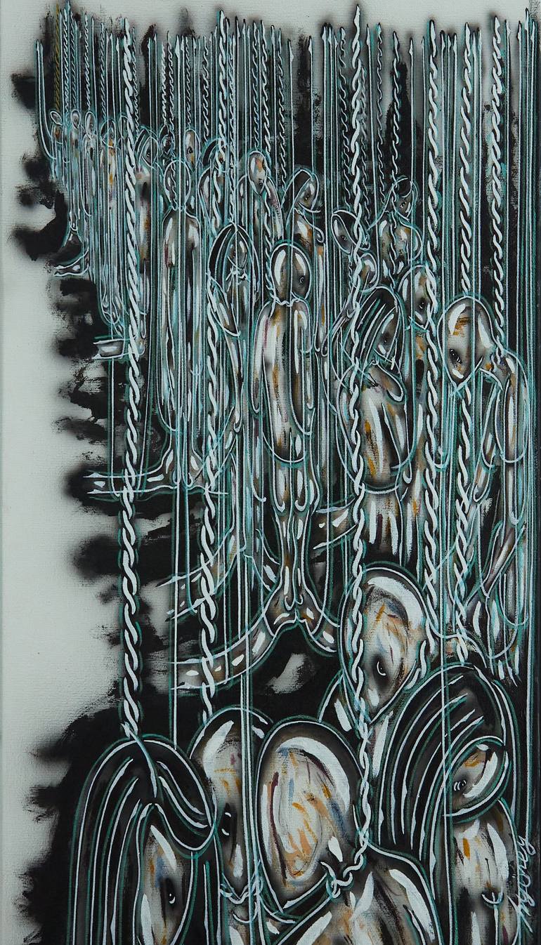 General information about my direction studies: I decided to go outside the traditional pattern concept from the second year of university and turned to distort the truth in my studies with the guidance of Prof. Dr. Fahri Sumer to move forward on a more original path. Over the years, in addition to academic education, I decided that it was necessary to be interested in philosophy, poetry, sociology, literature, etc. in art and started to examine the works given in this direction. By adopting an expressionist perspective in my paintings, I try to transform what I see not as it is, but in my own intellectual world and transfer it to canvases following my philosophy of life. From this point of view, my work naturally differed over time. The inspiration for my work comes from a wide range of fields. I take advantage of the people, events, and feelings I encounter in daily life as well as the cult works that are transferred from the past to the present. Besides, I work on the unique subjects that my imagination offers me, without breaking away from reality. When I set out with the idea that all living and inanimate beings in the life weave, although they seem to be uninterred, are actually intertwined at any moment; I think that all beings in nature affect each other, whether they are aware of it or not, spiritually or physically. Everything that exists in the world consists of moments and lines that intertwine in my mind. It wouldn't be an exaggeration to say that all the memories and information in my mind turned into my works with the deformation of all the beings I encountered throughout my life. In my work, I changed my perspective as soon as I realized that we could actually perceive a lot of things when I thought we were focusing on something in space. For me, it does not matter if the figures and objects are in the front, back, or anywhere. Therefore, the lines began to take part in my studies, away from the anxiety of the beginning or end, the place in the picture, the direction. Just as our lifelines intersect without calculating strangely, in my work, an existing line can intersect with a line farther away or vice versa. I don't worry about beauty and ugliness in my figures, but naturally, the reflections of truth in my perception go into my work. I don't want to convey subjects through the sense of male or female but the universal sense of human beings.