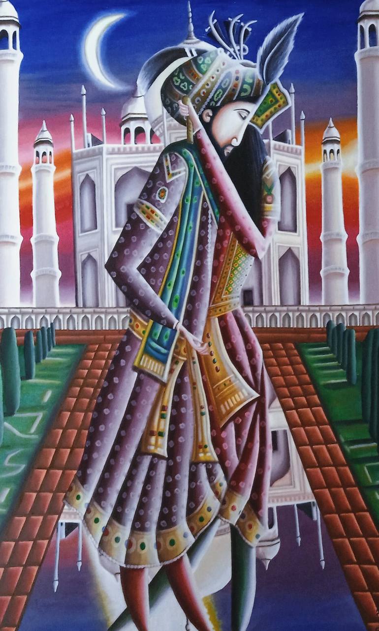 This artwork was inspired by the story of Emperor Shah Jahan and his wife Mumtaz Mahal. The emperor proved that his wife deserved the majesty of the world by building the Taj Mahal after she died. Perhaps one of the greatest demonstrations of love. When the viewer knows the story, he feels the paint...