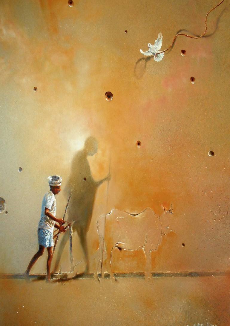 I am from Kolkata, West bengal, INDIA. My paintings are realisic in nature. I love to paint in all mediums- Acrylic,Oil,Charcoal,Water Colour on Paper or in Canvas.I really wish to draw and paint landscapes in any medium either on paper or on canvas. Again I have a desire to draw and paint different people , their expressions, their lives, their works, merged with beautiful landscapes, Cityscapes. For example, farmers working in the fields in a gloomy rainy day, where the sky is black. The farmers working in the fields will blend and fade out with the monsoon sky in background. This idea of blending the lives of different people with nature scapes or City scapes reoccur again and again in my mind. As an Artist I think that I do have a responsibility for the society where I live. I always wish that I should deliver some message through my paintings to the audience. I am very much interested in cultural concerns in my work. I will always try to portray the flavour of my Country to the World through my paintings. Self expression is very important to me. What I think and delivering that exact thinking on the canvas is really challenging. Sometimes it is very difficult and sometimes it comes spontaneously. I do believe that whatever I paint it should be simple and can be widely understood by a large portion of the audience. The painting should be soothing to the eyes.