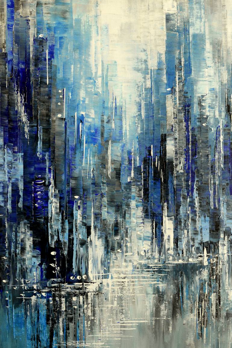 This is an original palette knife cityscape painting. Sides of the canvas are painted dark gray and can hung with or without frame. Protective coat of satin varnish applied. Wire attached. The painting is signed on the front and the back and delivered directly from my studio.
