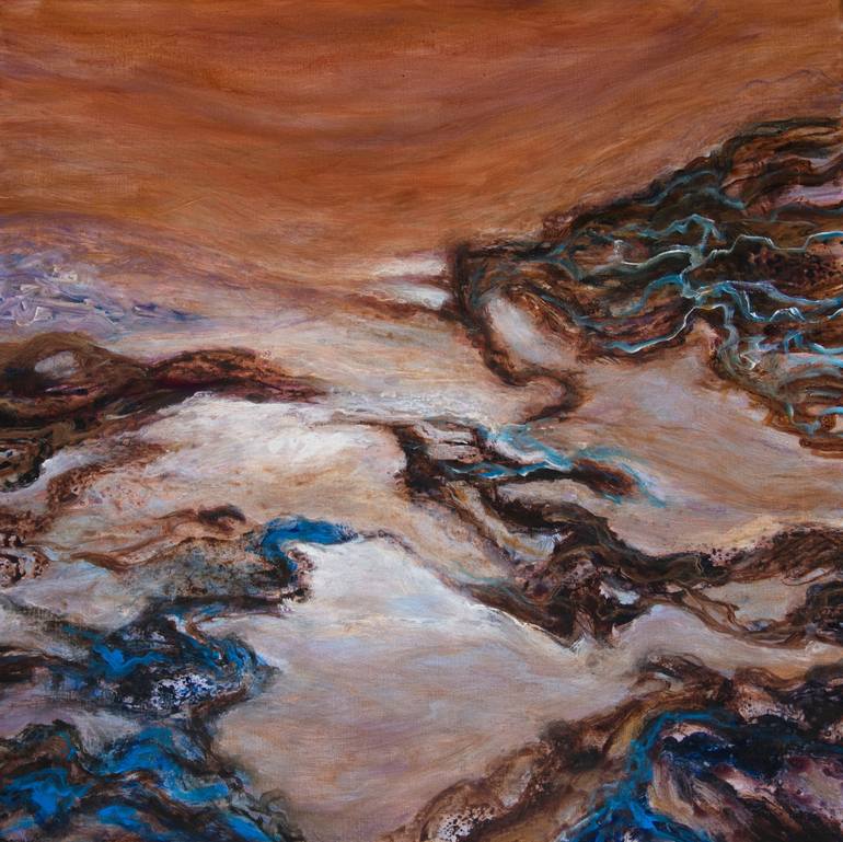 Paysage imaginaire, peint avec des couleurs chaudes et froides. Toile de lin. Expédié dans une caisse