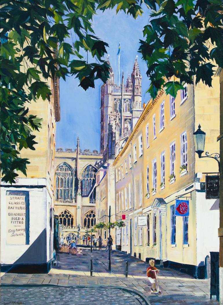 THE ABBEY IN MIDSUMMER SUNSHINE Oil on canvas 55cm x 40cm. 22in x 16in x1.5in. Another entry for The Bath Prize competition. This one is a finalist from 2011 and was shown in The Octagon in Bath. Architecture; Art; Bath Abbey; Bath Prize; Diana Aungier-Rose; English; For Sale; Framed; Impressionis...