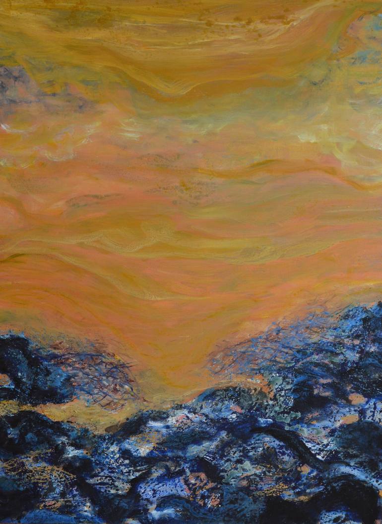 Imaginary vision of the creation of the world when the telluric forces are still in all their power. Painted on linen Shipped in a crate.
