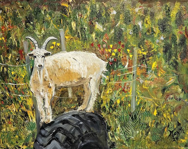 I NEVER SUBSCRIBE TO ANY ONE TREND OR STYLE; I USE WHAT SUITS MY ARTISTIC VISION. MAKE OF IT WHAT YOU WILL. THE GOAT IS A SENSUAL AND ESPECIALLY SEXUAL ANIMAL. HE EXPRESSES HIMSELF AND MAKES IT KNOWN. I SAW HIM IN A FIELD IN VERMONT NOT FAR FROM MY STUDIO WITH PIECES OF COLOR ALL AROUND HIM AS HE S...