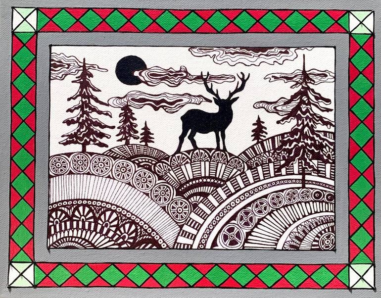 I had a dream: I was walking through a magical winter forest, where the snow shimmered with fabulous patterns, and the bright moon was shining. Suddenly a deer ran out to meet me, looked at me carefully and said: “Do you believe in fairy tales? Welcome to the magical forest!” The painting combines ...