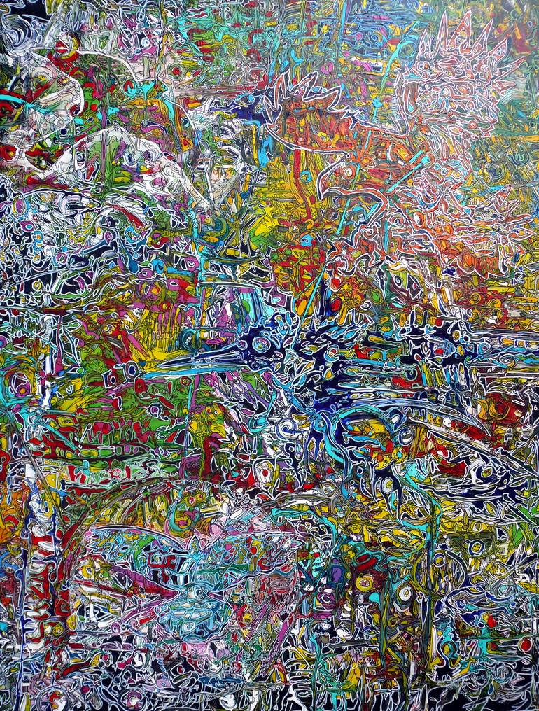 Everything I do can be called a lifelong process of evolvement like everything at nature once evolved within a "natural order". My studies as well as my time as a teacher, but first of all my travels, have formed me. Like everyone I was created by the daily influences: my children, my friends, and all the surrounding social and personal problems. From this daily life originates my creative sense for responsibility: I feel responsible for our planet's imperfect looking future! I sensed our Planet first of all visual, and connected my impressions with my strong interest for biology and my everlasting wish to travel. The urge to discover and the urge to create met at my soul. I traveled through many countries but how many did I not visit? I learned about the elemental, wild power of our oceans, the cradle of life itself. Then I became aware of the destruction by man. I saw the dead corals, the final extinction of uncounted creatures. At the small islands of the Pacific Ocean I became witness to the destruction of everything that should have been holy to us. These wonderful old and life giving reefs that we destroyed inspired me to formulate my feelings in order to oppose the destruction. I traveled further: New Zealand, Australia, and America with its unique New York. I traveled through the old Europe that is connected with my soul and through the hot Africa with its hard but nevertheless human way of life. Indonesia with her unlimited sources of artists and wonders of nature helped me to understand our world, as did the drop of river water under my microscope - or the body of the ant, the blade of grass?all these systems and impressions go through the filter of my brain and everything flows further into my heart and my hands: the forms, the colors, and the connections. Is the blade of grass with its efficiency not superior to any machine? And what kind of wonder is the human being? 23000 breaths does he take each day, and he needs so many liters of pure water - pure water from his small habitat within our universe. You should think that this habitat would be perfect for him. We are all tiny parts within the great, unbelievable and after all not understandable system. Every detail within this system is important, both in the physic as well as in the psychic world. Errors of the system (like my diseases) let me reflect about the connections within the system. Everything is connected - nothing is meaningless.