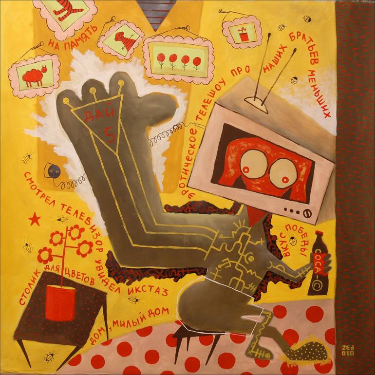 Eduard Zentsik was born in Sillamae, Estonia. Painter, photographer, graphic artist, designer, author of installations, performances and musical improvisations. Organizer of youth exhibitions and projects. For over years of creativity had more than fifty personal exhibitions and took part in numerous joint projects. Participant and winner of international Photographic and Art competitions. Numerous works are in private collections around the world. Apart from the artist's stylistic assuredness and the embedded narratives that one might deduce from seeing bold images of Eduard Zentsik, the artist is primarily fascinated with ontological investigation. Meshed within this overriding motif is the artist's work that insists on fabulous implausibility that fills the mind with haunting hallucinatory and often visionary excesses. This work can only emerge out of a visionary understanding of the cultural context and the inner workings of the present state of the world. But it would also be accurate to say the artist's vision has a tragic undertone. And it is this undertone (in spite of the often bright coloristic applications insinuating an uncanny admixture of surreal adumbration and outsider art with Pop Art surface treatments) which gives the artist's work its edgy feel, its haunting authenticity. In this case, it is appropriate to recall that the term "outsider art" was coined by Roger Cardinal as an English synonym for art brut. The viewer will also discern through Zentsik's visual notations that the artist is concerned with the idea of mutation and metamorphosis. This is a type of writing, in the broad sense, in which the canvas is used very much as a sheet of paper as a type of mystic writing pad on which, if we are to believe Freud, is a model of the psyche. Zentsik juxtaposes different realities allowing the mind to find integration in dissimilarity, in a dramatic cathartic interchange of worlds that blend the symbolic, the real and the imaginary. The artist pits together a near claustrophobic intensity of enclosed space in which we see a great liberating conflagration of surging elements (often competing humans, animals and other creatures) struggling to assert themselves. These entities form part of and are set-off from what appear to be vast expanses of other-worldly terrain that are meant to defy human needs and desires.