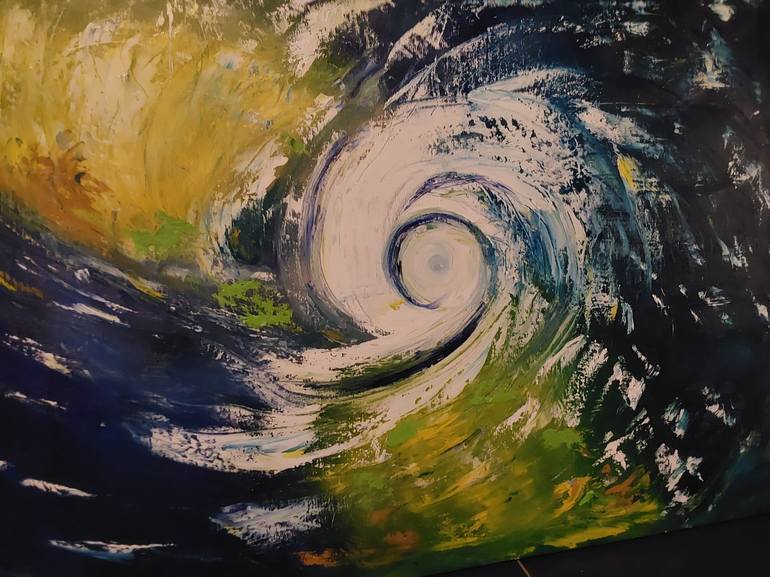 TYPHOON this is abstract original oil painting on canvas love of the paint and wonderful color to inspired to make paint it I make by palette and brush mixed with the water on quality of canvas gresso, last varnishing and framed with the silver color