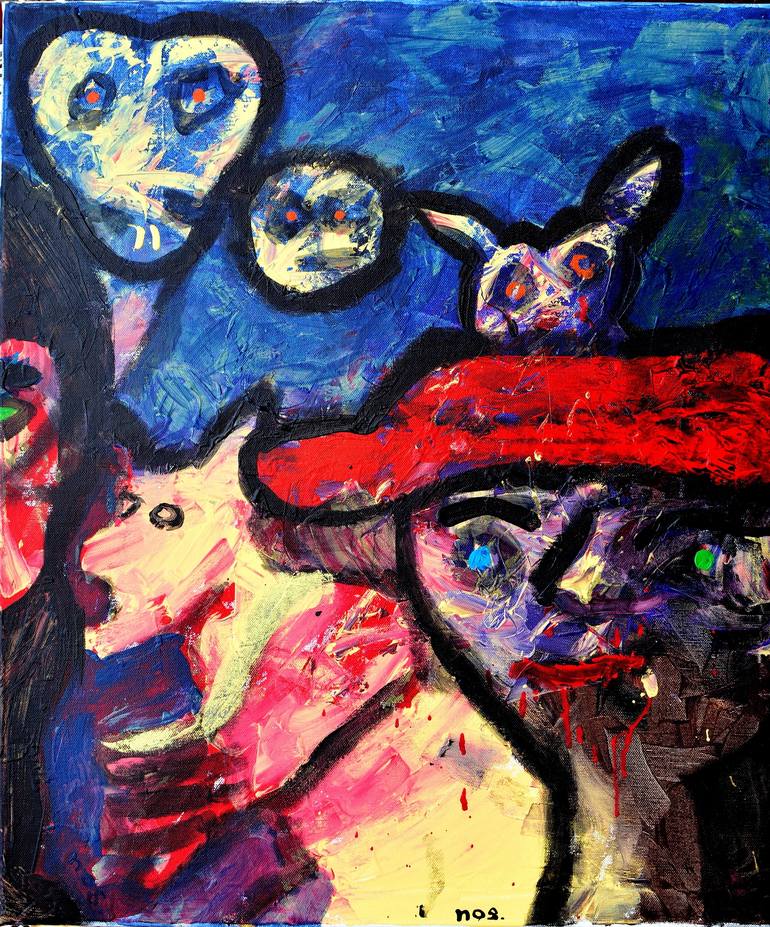 Ideas, concepts and situations ... are here. Inevitably, I guess I am trying to communicate perceptions to the narrative. But to maybe make it fun. There is ... accident. Often a story underlying. || Media: A lot of my work is on canvas. I like large scale of preference. I get bold colour, veering from a natural palate. Acrylic is ... convinient but I am now using more oil and mixed media. I gravitate towards perhaps red and violet and orange and yellow. I often add collage elements. Pastels can add intensity.