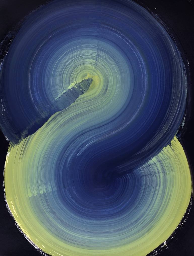The symbolic image of Tai Chi, yin yang principle of ultimate reality and creation. Can be a diptych set with Tai Chi 01. Acrylic on acid-free paper. Ready to frame.