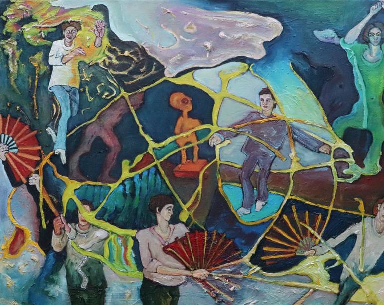 I am very inspired by Taiji. With experimental painting techniques, I try to represent the body's energy flow, the Qi.