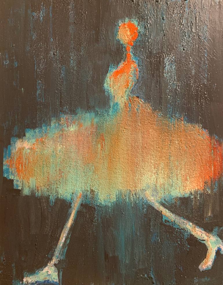 Figurative art inspired by Giacometti' sculpture conveying a mood, this one is taking a leap, with a firm step. Acrylics/mixed media on canvas. Ready to hang - no need to frame it