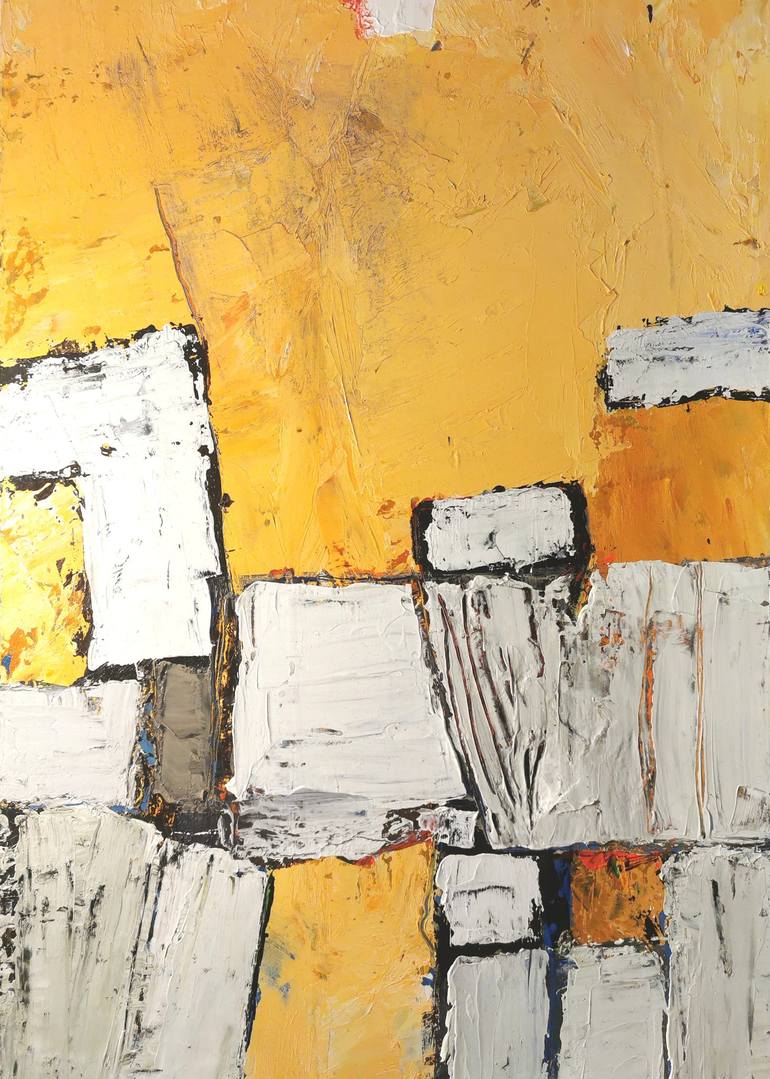 A creation where the constructive and the spontaneous gesture combine to find a harmony of proportions and colors. This painting made on wood panel does not require any frame and is ready to hang.