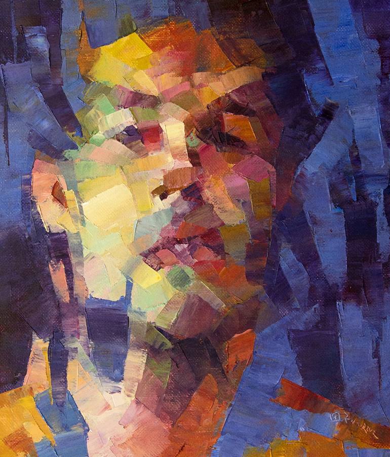 Expressive semi-abstract portraiture of a male on canvas.