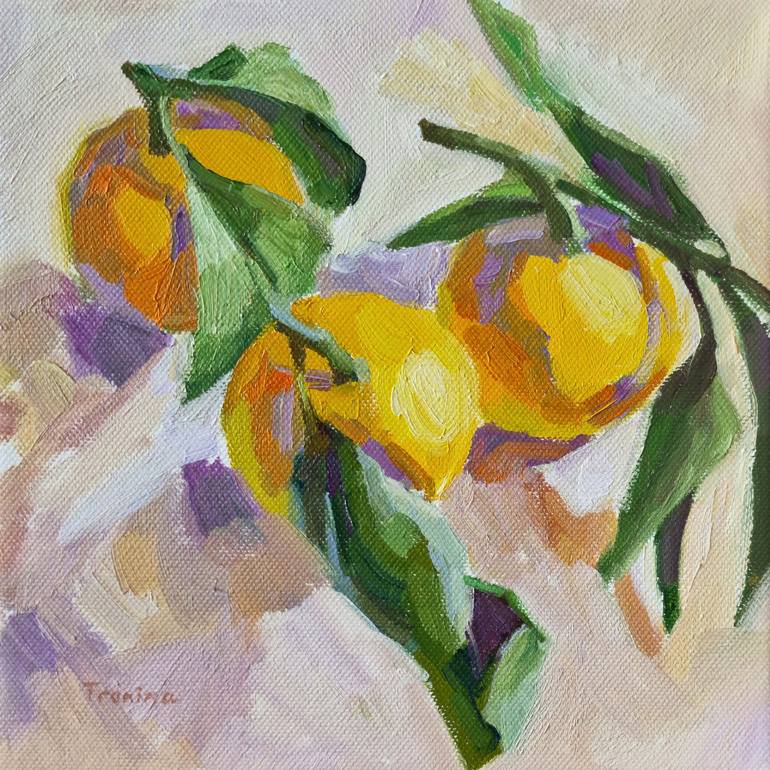 In this work, I wanted to depict tangerines in the style of Impressionism, with visible brushstrokes. I like how the composition turned out, with color fragments and spots, the arrangement of the leaves, and the shadows they create. Tangerines are incredibly rewarding subjects to paint, they almost ...