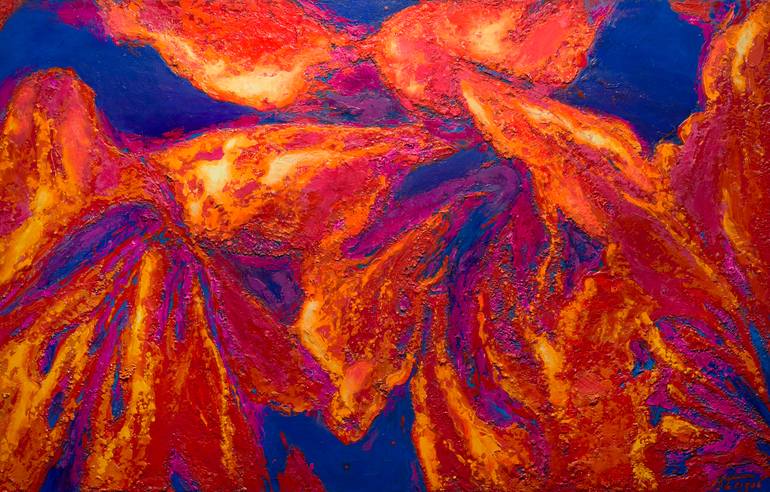 Forming of a flower is “eternal mystery”, “recurring theme”. Cezanne once dreamt to paint not the surface of a mountain but the geological forces, forming it. Powerful, almost sculpture-like texture of exaggeratedly magnified petals, opposition of red and blue combine elements of abstraction with th...