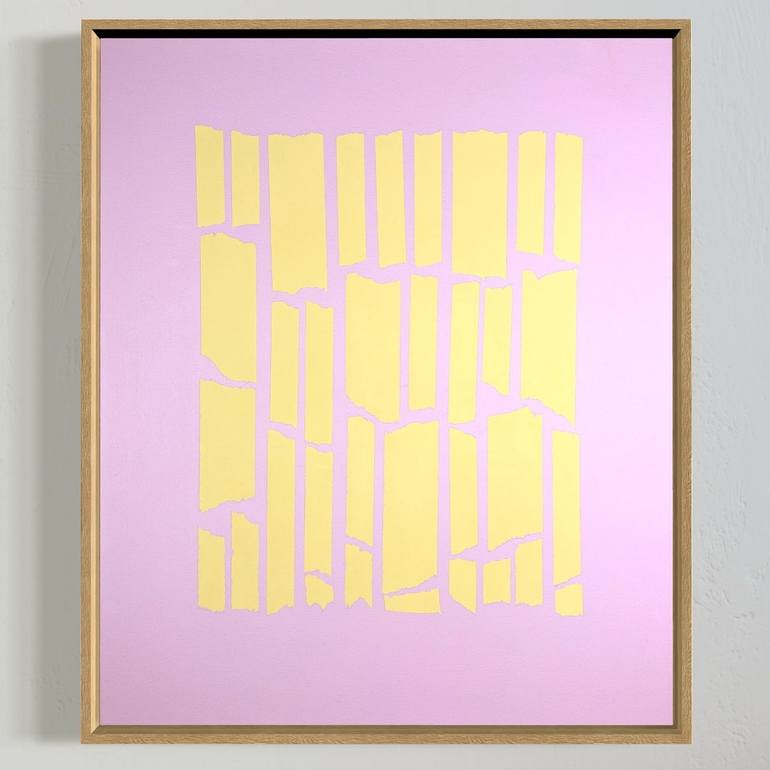 Inspired by the tape used on artwork and the patterns they create. Acrylic on canvas.