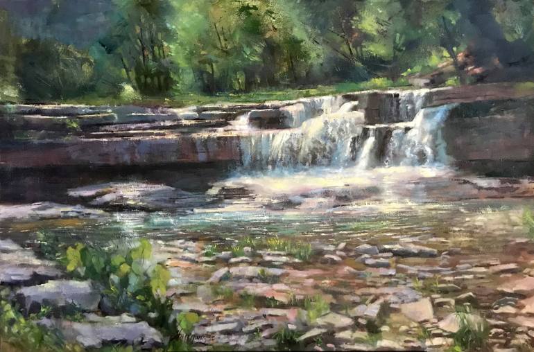 This recent 24x36 inch oil on stretched canvas is a new addition to a series of paintings I began a few years ago and shows the natural beauty of Taughannock Falls State Park in Ulysses, NY. Taughannock Falls is directly associated with the Finger Lakes area of New York and is situated near the we...