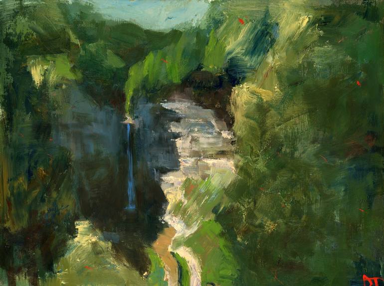 Taughannock Falls is part of a series depicting vacations and leisure lifestyle.. I use subdued colors and loose brush strokes, as in most of my paintings, in order to create the mood and feel of spontaneity. Art buyers may see a symbolic reference to prominent 20th century American painters like Ge...