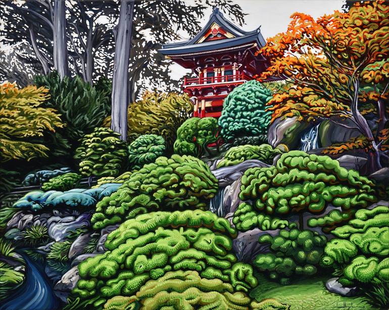 Alex Nizovsky – 'Tea Garden' (2021) Painting from 'Californian Landscapes' Series. Style: Abstracted Landscape. Original Contemporary Art by Alex Nizovsky, Sausalito, California. Size: 30" x 24" x 3/4" (76 x 61 x 2 cm). Media: Acrylic on Canvas. Original Single-Piece Artwork. Signed by the Artis...