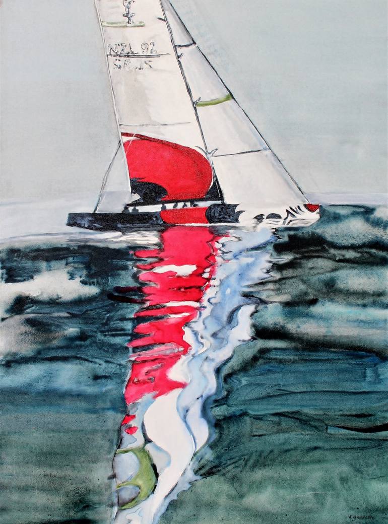 I was a writer and photographer for America's Cup Yacht racing in 2012 and 2018, Team NZ with Dean Barker was my favorite racing sailboat. It placed second in the series that is held every four years. The yacht is beautiful and inspired me to take my photo and reflect on its beauty as its reflection...