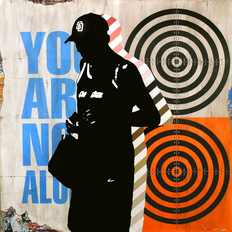 Tehos collage and acrylic on canvas streched on wooden frame 100x100 cm - You are not alone