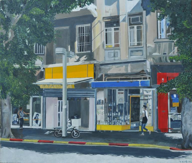 I love walking in the beautiful streets of Tel Aviv and choosing a random corner of the city to paint and make it my own. Here is a moment in time where I captured two figured hurry to their business in the middle of a summer's day. I think that the street atmosphere and the heat can be felt from t...