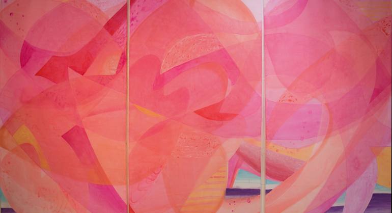 The series of this pink work began as a result of a hoot. Unintentionally, the work appeared on its own. I had intended to do more work on it, but when I woke up in the morning and looked at the work, it was already finished, something that has happened only a few times in my nearly 40 years of pain...