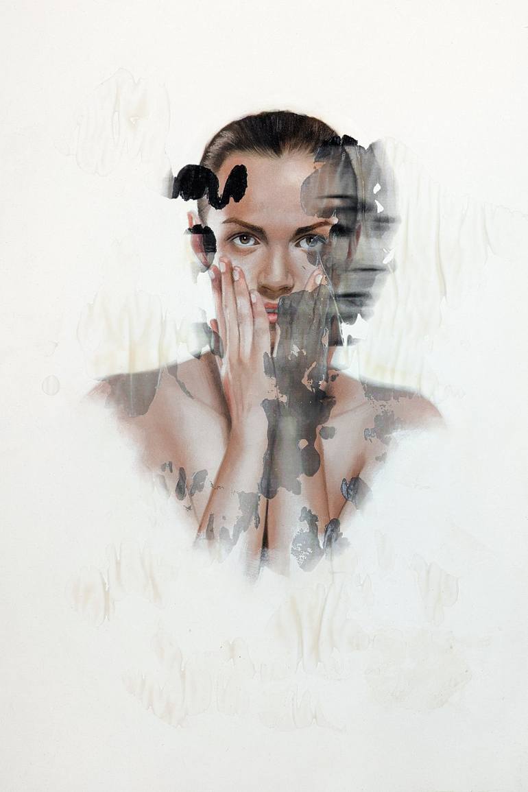 Raúl Lara Naranjo (Morón de la Frontera, Seville, Spain, (1980). Like every child, Raúl showed determination in his first scribbles and soon his parents observed how he spent hours in front of hundreds of papers that he painted and painted, doing everything kind of drawings. That motivated him to be enrolled in painting classes at an academy at the age of 9 so that he could learn about the fundamentals of pictorial art. Thanks to these classes, he began in the oil technique and began to make his first paintings for family and friends, always in small formats. From that moment his training has been self-taught, guided by inspiration, by the hours and hours in front of countless canvases, by the readings he has done, by videos, online information ... Almost all his knowledge about painting has been the result of his interest, his passion, his curiosity and desire to learn, and above all, his innate quality for painting. Now in his maturity, not only vital but pictorial, he manages to capture in his painting all that learning, which continues to develop day by day, In the beginning, his painting was always classic and realistic: seascapes, still lifes, Andalusian patios ... Little by little, always self-taught and inspired by contemporary artists, he began to explore more modern techniques, alternating various media such as oils, acrylics, pastels or various inks up to the transfer of images, with which he achieves that characteristic result that gives his work that unique appearance. greater expressiveness to the paintings and alternating various mediums such as oils, acrylics, pastels or various inks. Artist statement My recent work explores the two parts that we all have, the "I" that we show and the interior, the one that only we fully know, the hidden one. Mark Twain said that every man is a moon with a hidden face that never shows anyone. I represent this on the canvas first whistling in a more or less classic way, using oils and acrylics, this would be the face we show. Once finished and properly dried, I transfer the image used as a painting motif onto the canvas, resulting in a black and white image. This creates a work that navigates between color and black and white, the thin and smooth layer of paint versus the textured and broken caused by the transfer of the image and the mediums used for the same.