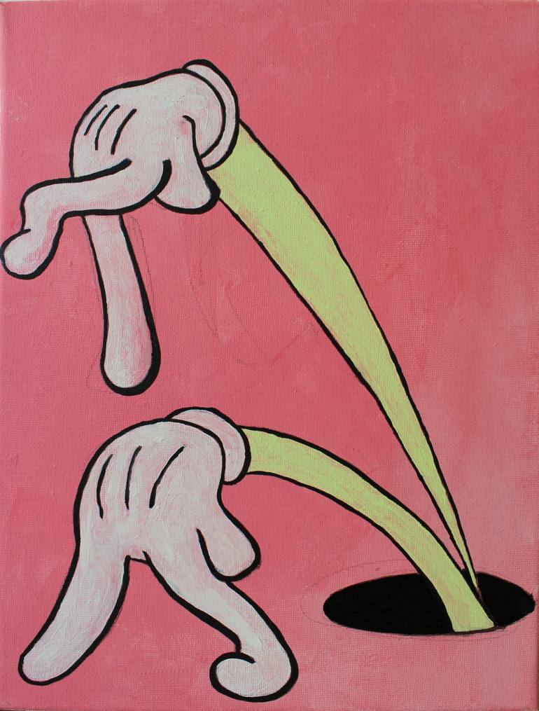 The Trickster Archetype and the surrounding visual culture around this including popular cultural references like Bugs Bunny. From these references significant forms were used to make a visual language. Technique for the paintings are acrylic on canvas. Images are worked up from sketchbook drawings ...
