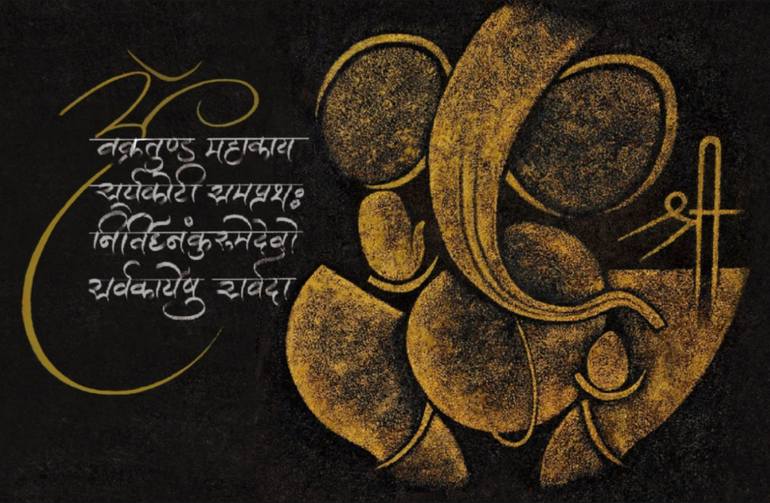 Artwork made using unique mixed media texture work on canvas. It looks premium and beautiful on wall after installation. Perfectly go with all type interior decor. Specially made for living room wall or entryway console. This artwork having a handwritten Ganesh Stuti Mantra. This artwork can be cus...