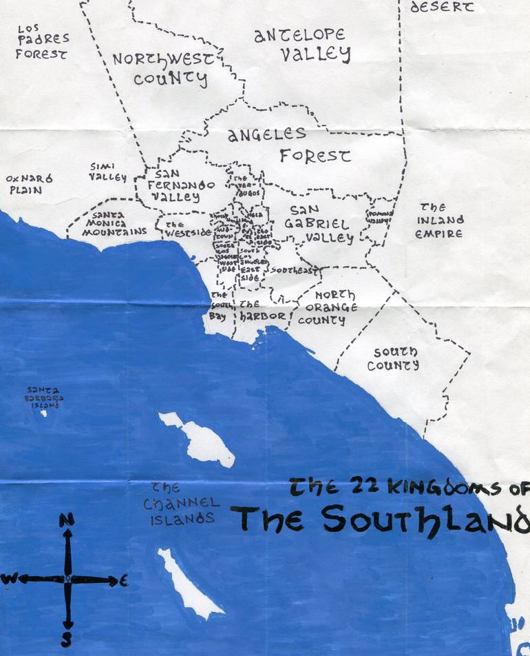 Other cities are broken into smaller administrative regions: boroughs, wards, alcaldías, gu, &c. This is an attempt to represent Los Angeles and Orange counties' kingdom-like regions which I numbered 22.