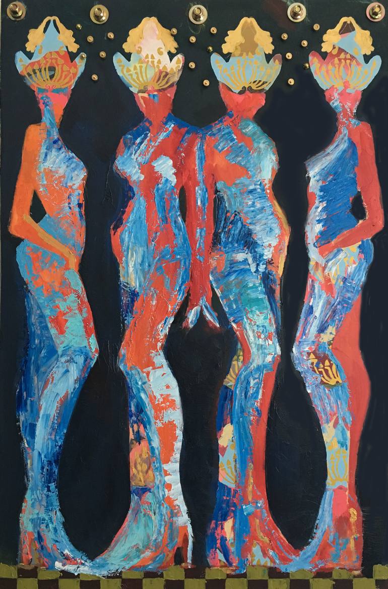 I was looking at natural forms and seeing the connection between human and the environment. We are inseparable from Nature, and this is my religion, philosophy and way of thinking. I hope the viewer feels and sees this interconnectedness in my funky style of mark making.