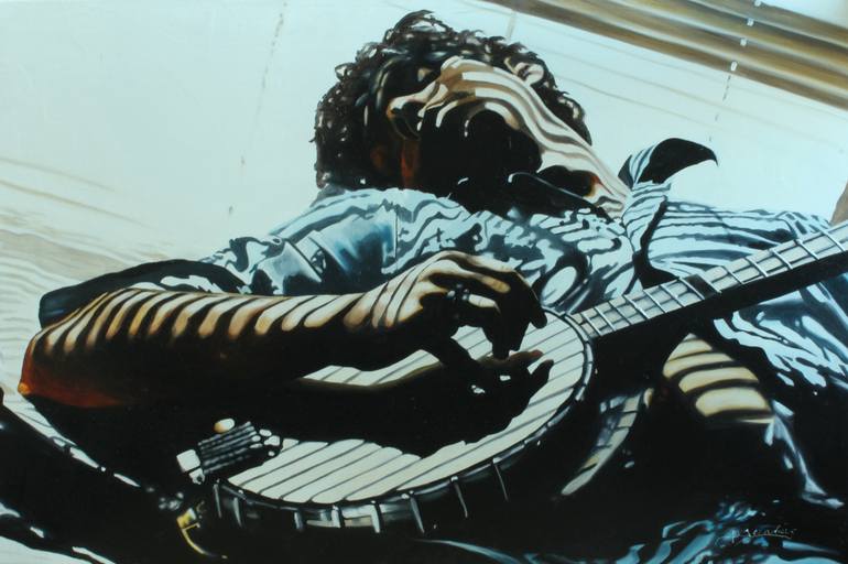 The source photo for this painting was taken by Jessica Emery, an amazing photographer who kindly gave me permission to paint this image. When I saw Jessica's photo, I loved the play of light and shadows over this banjo player.