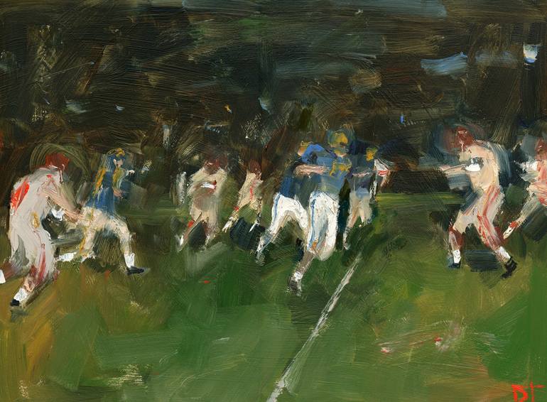 The Big Uglies is part of a series depicting sports and athletic competitions. As in most of my paintings, I use subdued colors and loose brush strokes in order to create the mood and feel of spontaneity. Art buyers may see a symbolic reference to prominent 20th century American painters like Geo...