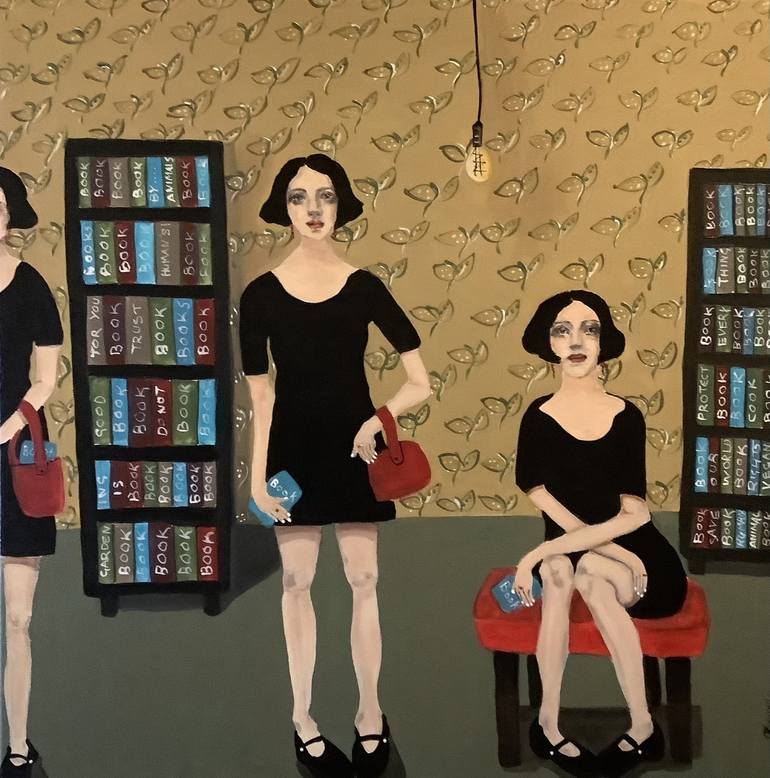 the book club , this painting was inspired by my love of books , i have a kindle which is great to read at night , but the actual presence of a book is special . i did belong to a book club years ago but could not easily read books I hadn’t chosen myself , I didn’t last longat the book club , i had...