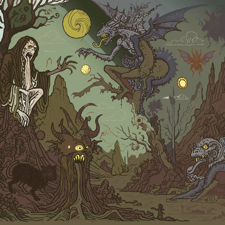 The meaning of this painting can be interpreted as a symbol of destruction, imbalance, or even a reflection of fear in the human subconscious. It can be a manifestation of the world a dream that turns into hell, where strange creatures and darkness rule everything.